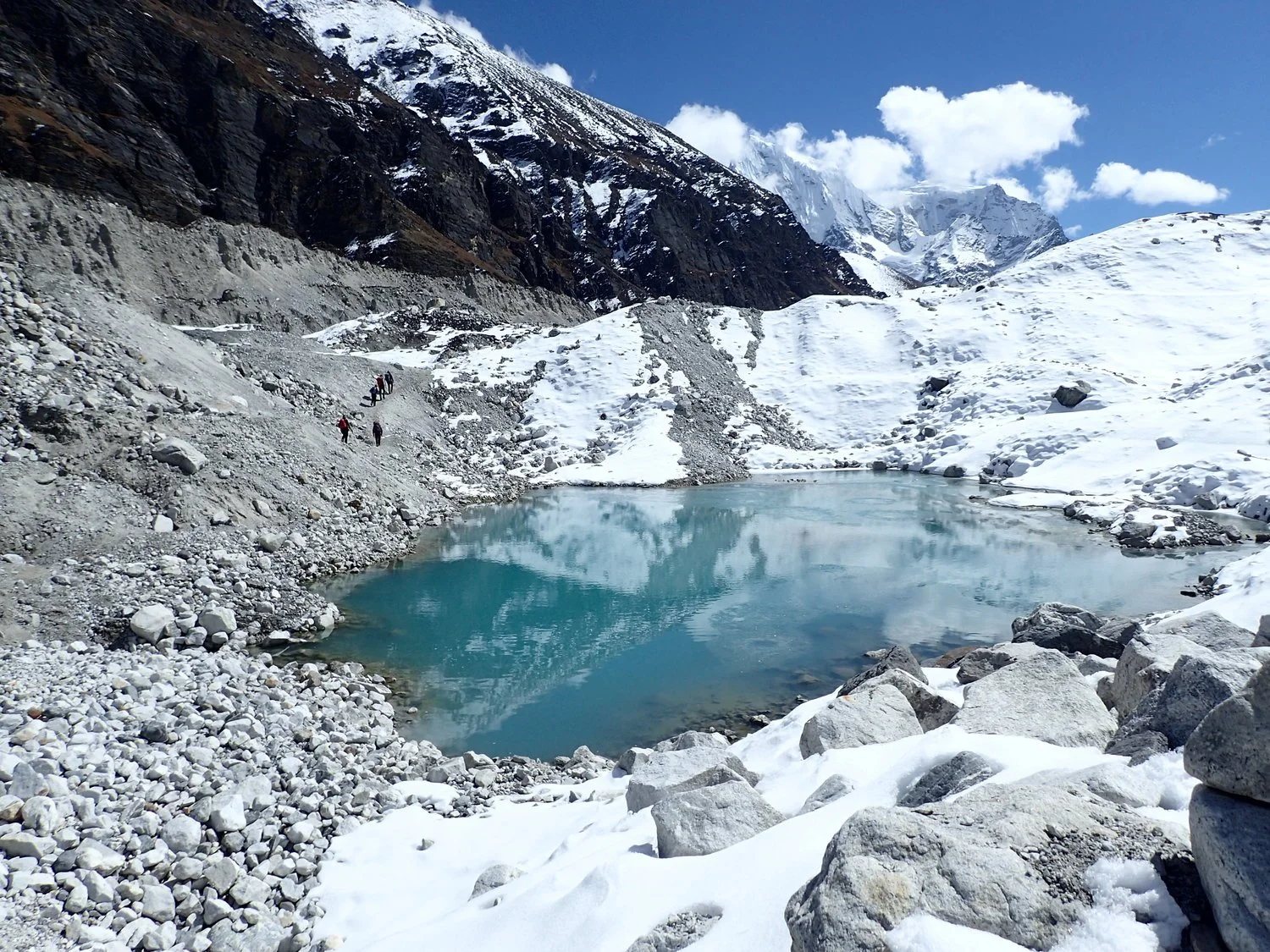 Thagnak to Gokyo and climb Gokyo Ri: The trek to Gokyo crosses the Ngozumba Glacier, the largest in Nepal. The trail then heads north on the far side to Gokyo village. After a rest, climb Gokyo Ri (2 hrs), which offers amazing views of Cho Oyu, Everest, Lhotse, Makalu, Cholatse and Taboche.
