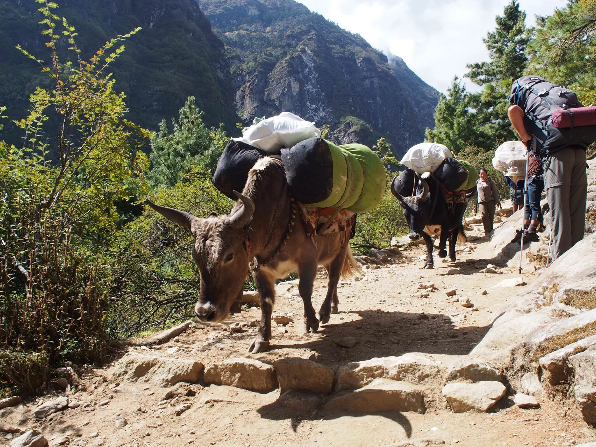 Dole to Namche Bazaar: The trail descends to Phortse Thanga and there are rhododendrons, waterfalls and flowers as well as mountain goats and musk deer. From the village of Mong there are views of Khumbila Peak and then further on we can see Amadablam and Thamserku. The trail then winds through forest before descending into Namche.