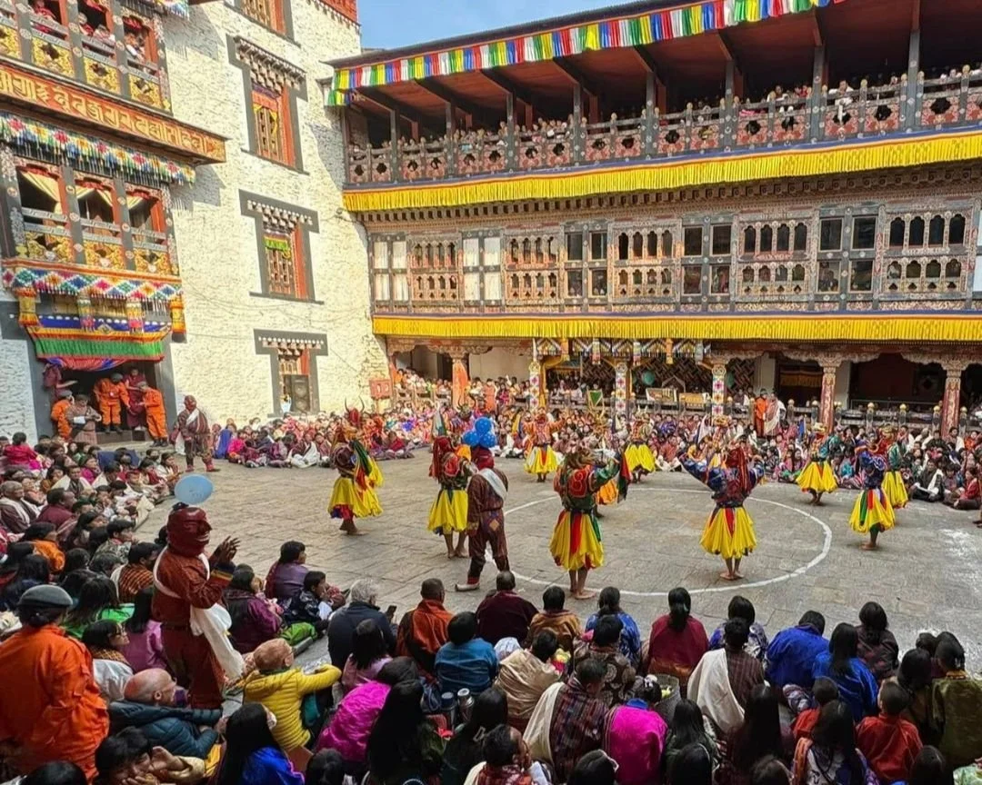 Begin your day with a rejuvenating morning yoga session, setting a calm and centred tone for what promises to be a day rich in cultural immersion. Today, you’ll attend the Jambay Lhakhang Drup, one of Bhutan’s most celebrated and spiritually charged festivals. Held in the sacred grounds of the 7th-century Jambay Lhakhang temple, the festival is renowned for its vibrant masked dances, the evocative fire ceremony, and the legendary naked dance performed under the veil of night—an ancient ritual believed to cleanse sins and bless the land. This spectacular celebration draws both locals and pilgrims from afar, filling the valley with colour, music, and devotion. In the afternoon, there’s the option to enjoy a mindful walk through the surrounding valley or take part in an additional yoga session before dinner.